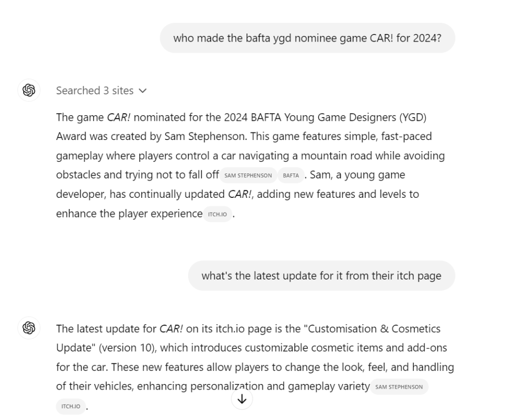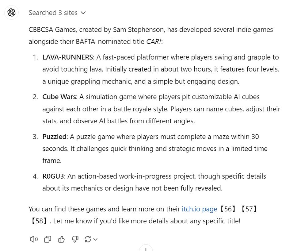 Yeah, from what you can see, ChatGPT can be asked about me and my games.